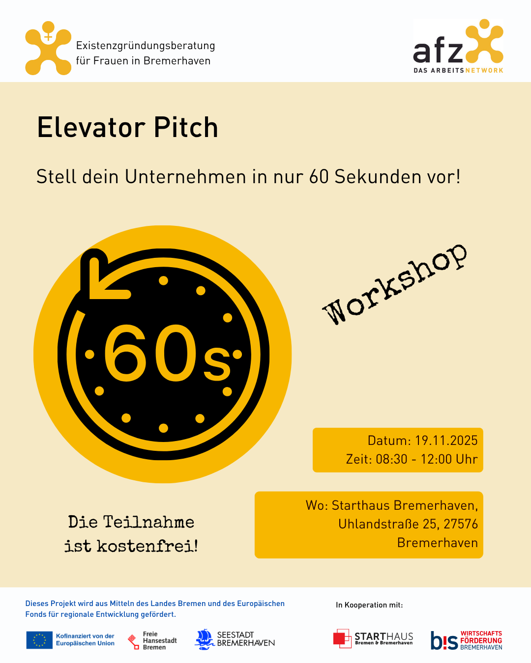 📍 Ort: Starthaus Bremerhaven, Uhlandstraße 25, 27576 Bremerhaven